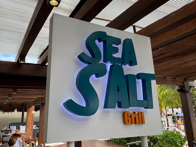 The resort had eight restaurants and eight bars, including a 24-hour coffee bar in the lobby. Our favorite restaurant was Sea Salt Grill, the poolside restaurant that served fresh seafood. We ended up eating lunch there every day. I loved the seabass and the seafood soup. Ron loved the hot sauce, made in-house from roasted habanero peppers and olive oil. Next to Sea Salt Grill there was a tent where different foods were cooked each day – paella, pizza or tacos. Yum!